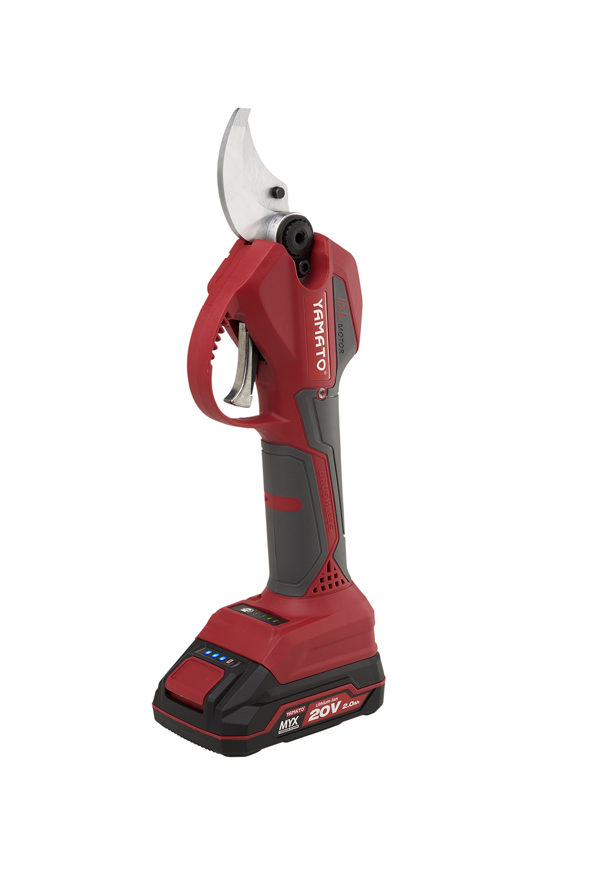 La cesoia a batteria Yamato è un utensile potente e preciso, ideale per la potatura di rami e arbusti.
